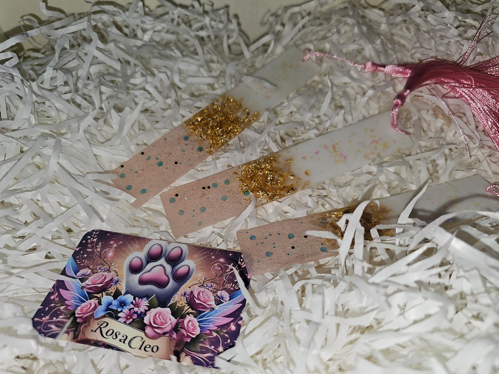 Uit resin gemaakte boekmarkers.